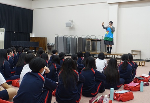 幼児教育コース・2年生に向けた「エプロンシアター発表会」の様子