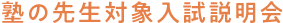塾の先生を対象に実施する入試説明会のスケジュールです。