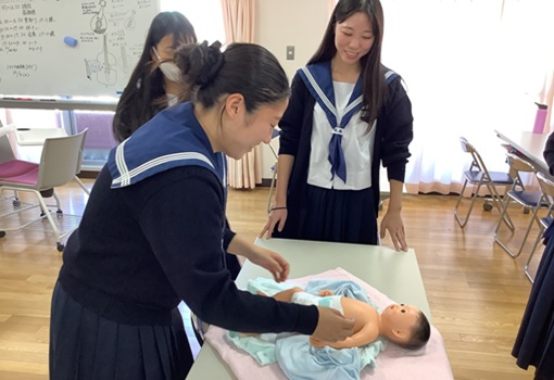 看護医療進学コース 小児看護・赤ちゃん着替え実習の様子