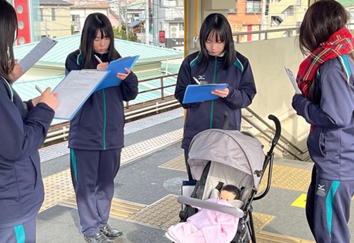 看護医療進学コース ベビーカーでのフィールドワークの様子
