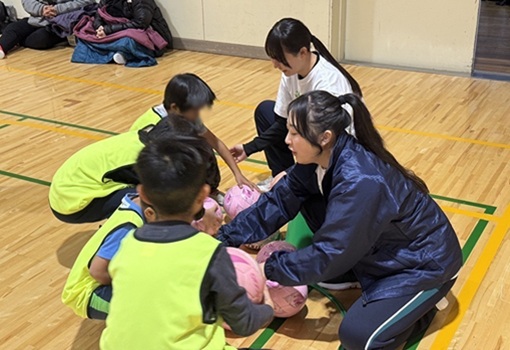 幼児教育コース「幼児期の運動・体を動かす遊び」についての講義の様子