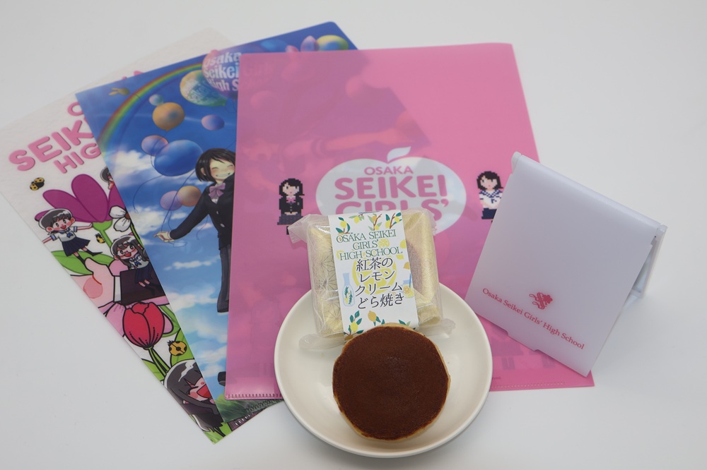 また今回お越しいただいた皆さまには、在校生が考案し和菓子店菓匠あさだとコラボした和菓子「紅茶のレモンクリームどら焼き」と「成蹊オリジナルミラー&クリアクリアファイル」をプレゼントさせていただきました。