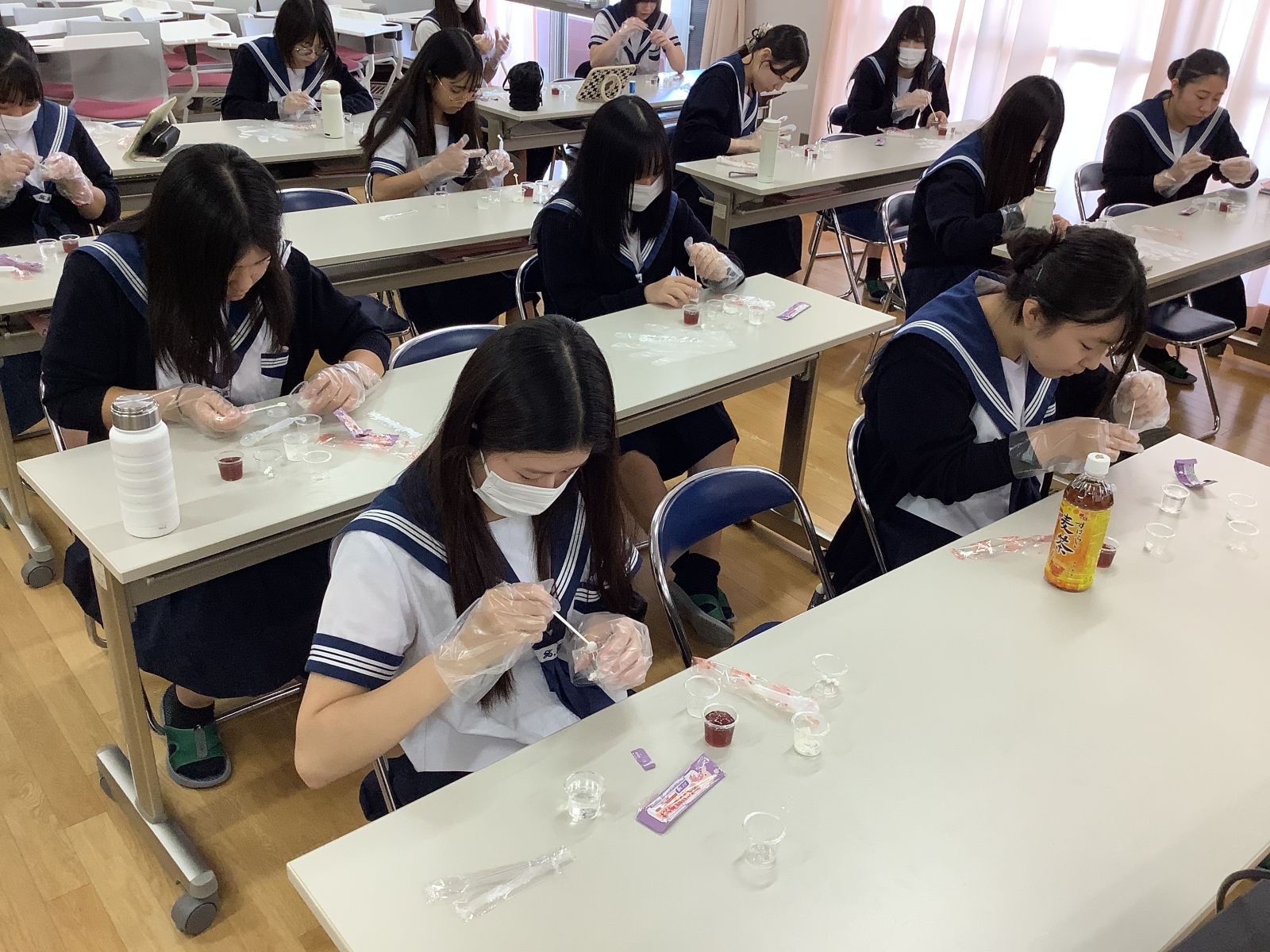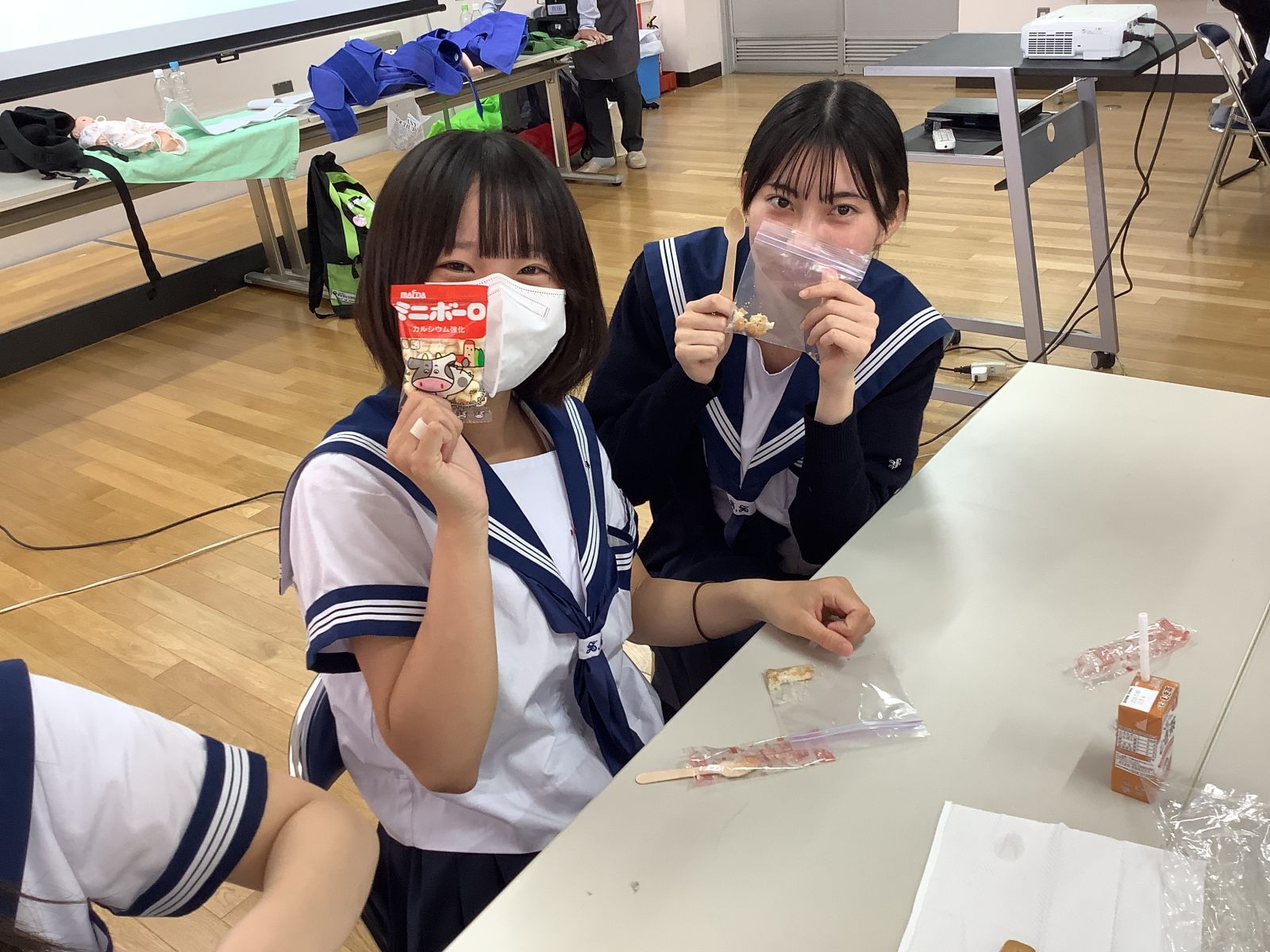 また、身近なお菓子を飲み物で柔らかくし、乳児や高齢者が食べやすいように工夫した非常食の体験も行いました。