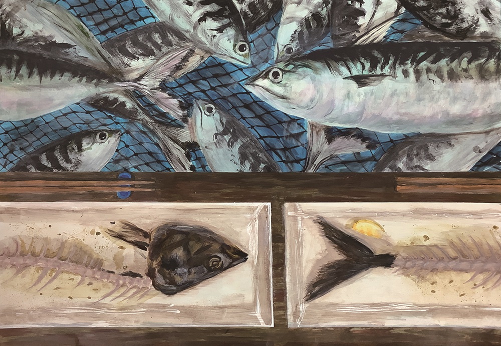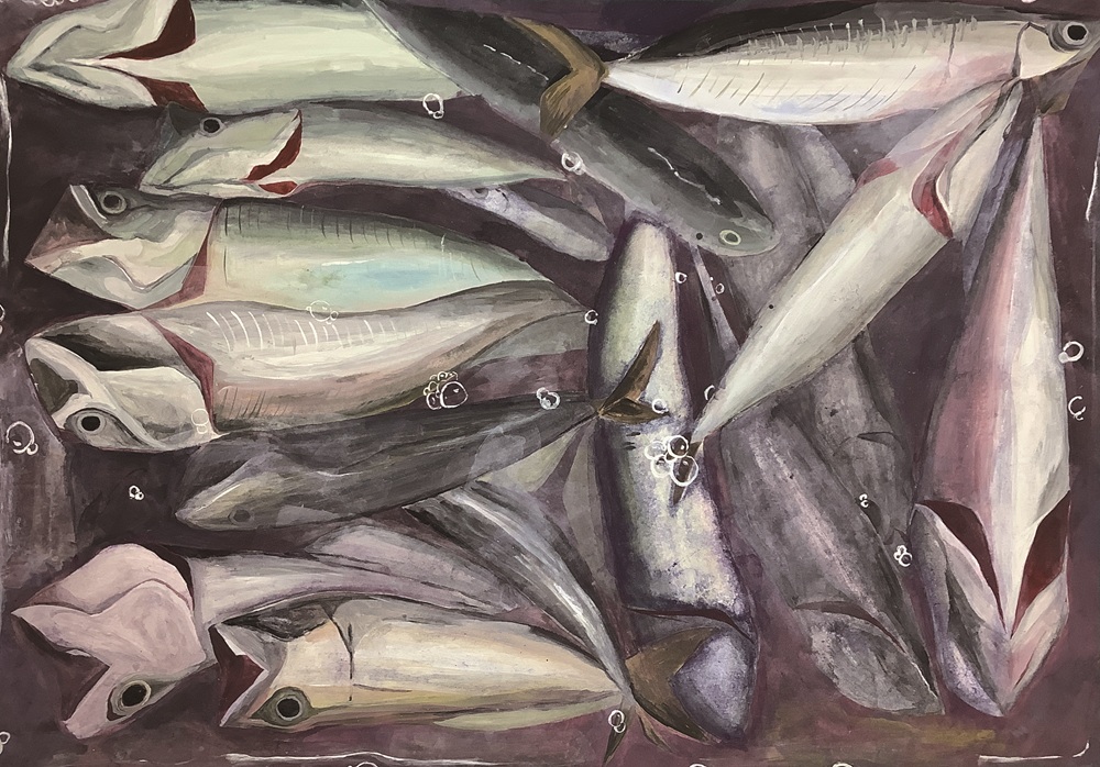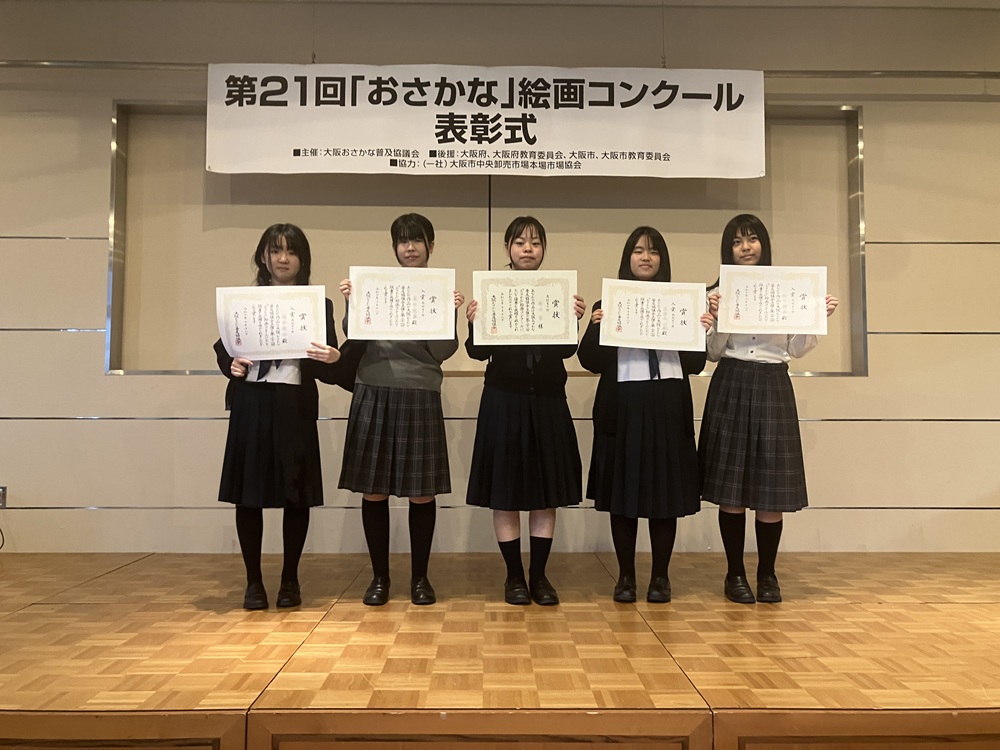 厳選なる審査の結果、美術科1年生から「大阪おさかな普及協議会賞」1名、「入賞」4名の計5名が入選しました。