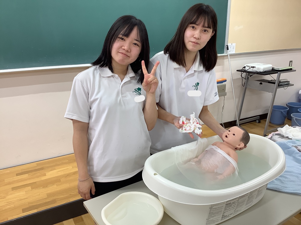 2025年10月・11月、看護医療進学コース3年生の看護医療探究の授業で、赤ちゃん人形を用いた沐浴の実習を行いました。