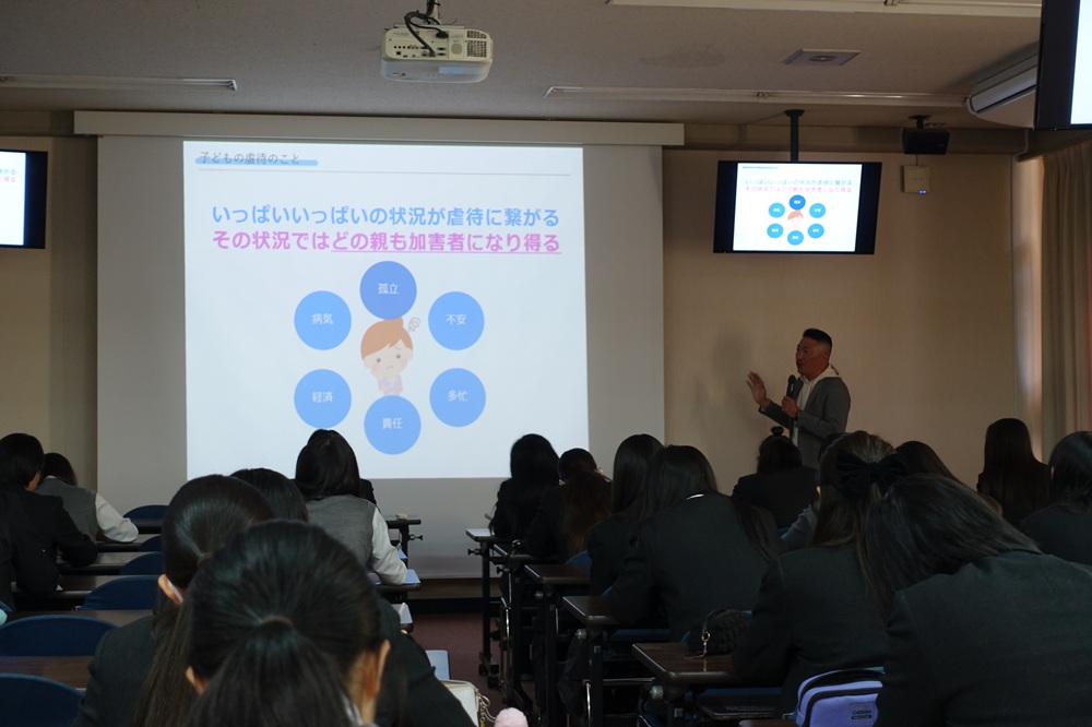 生徒たちは事前学習として、児童虐待の現状やその背景、対応の基本などについて学んでおり、今回の講演はその理解をさらに深める貴重な機会となりました。