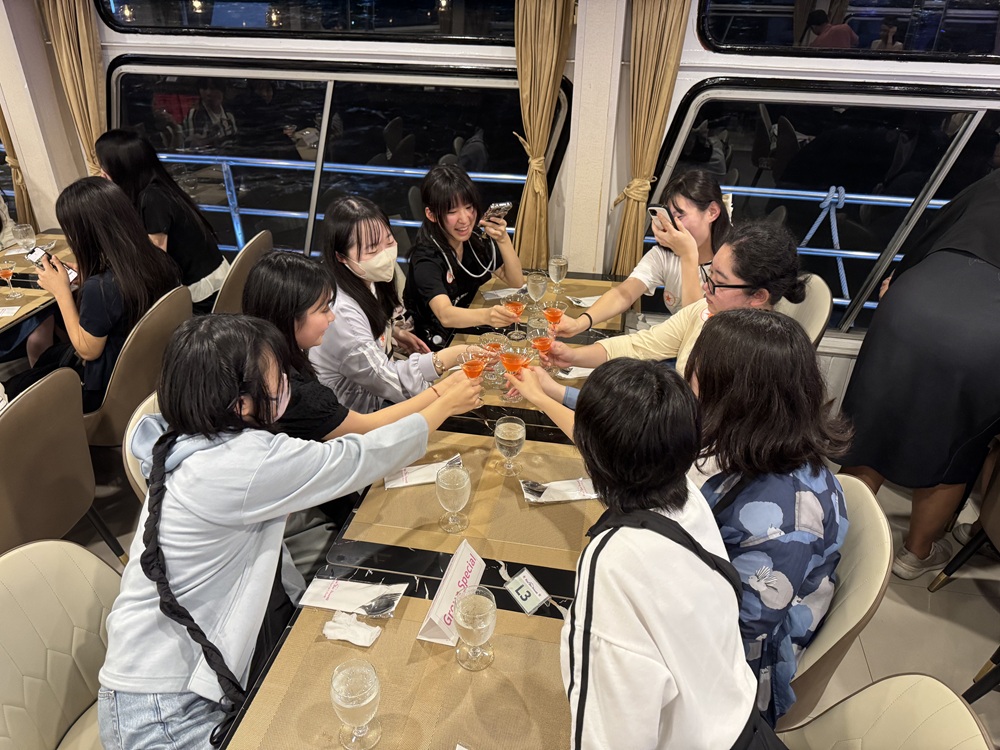 19時にリバーシティ桟橋に集合し、夕食はクルーズ船での船上バイキングを楽しみました。