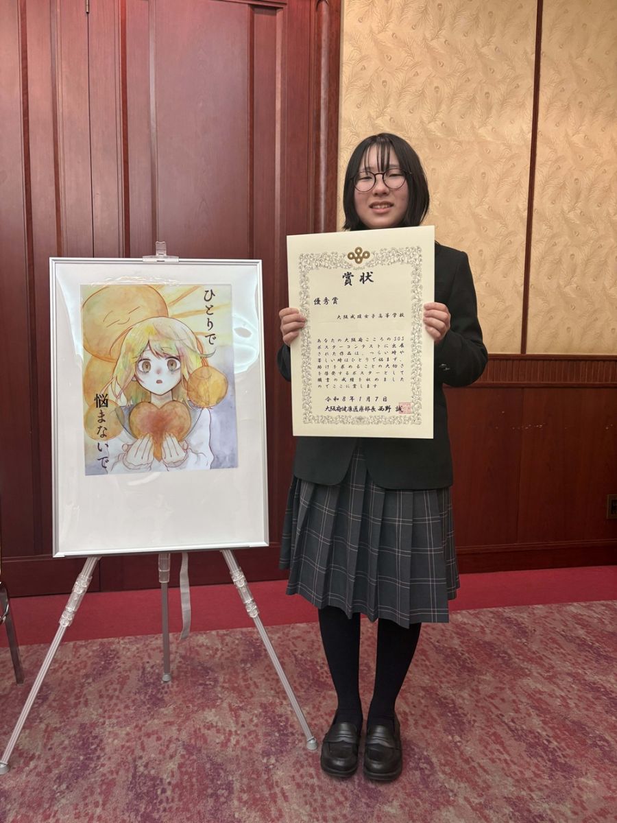 「令和7年大阪府こころのSOSポスターコンテスト」において、美術・イラスト部に所属する美術科1年生の生徒が、厳選なる審査の結果「優秀賞」を受賞しました。