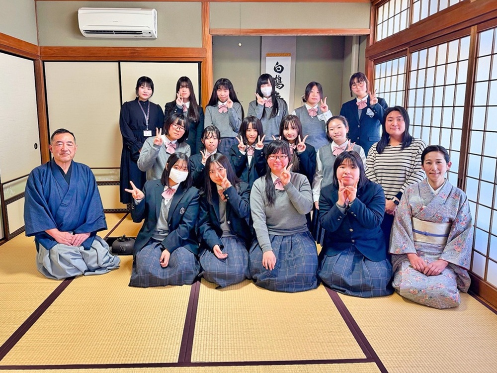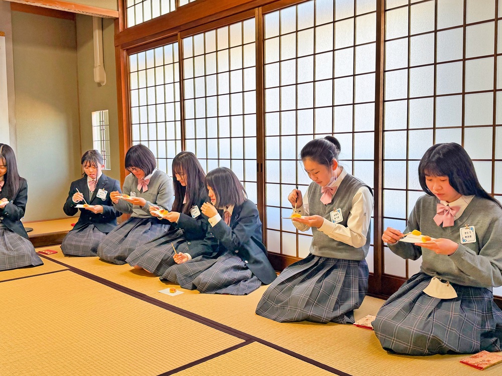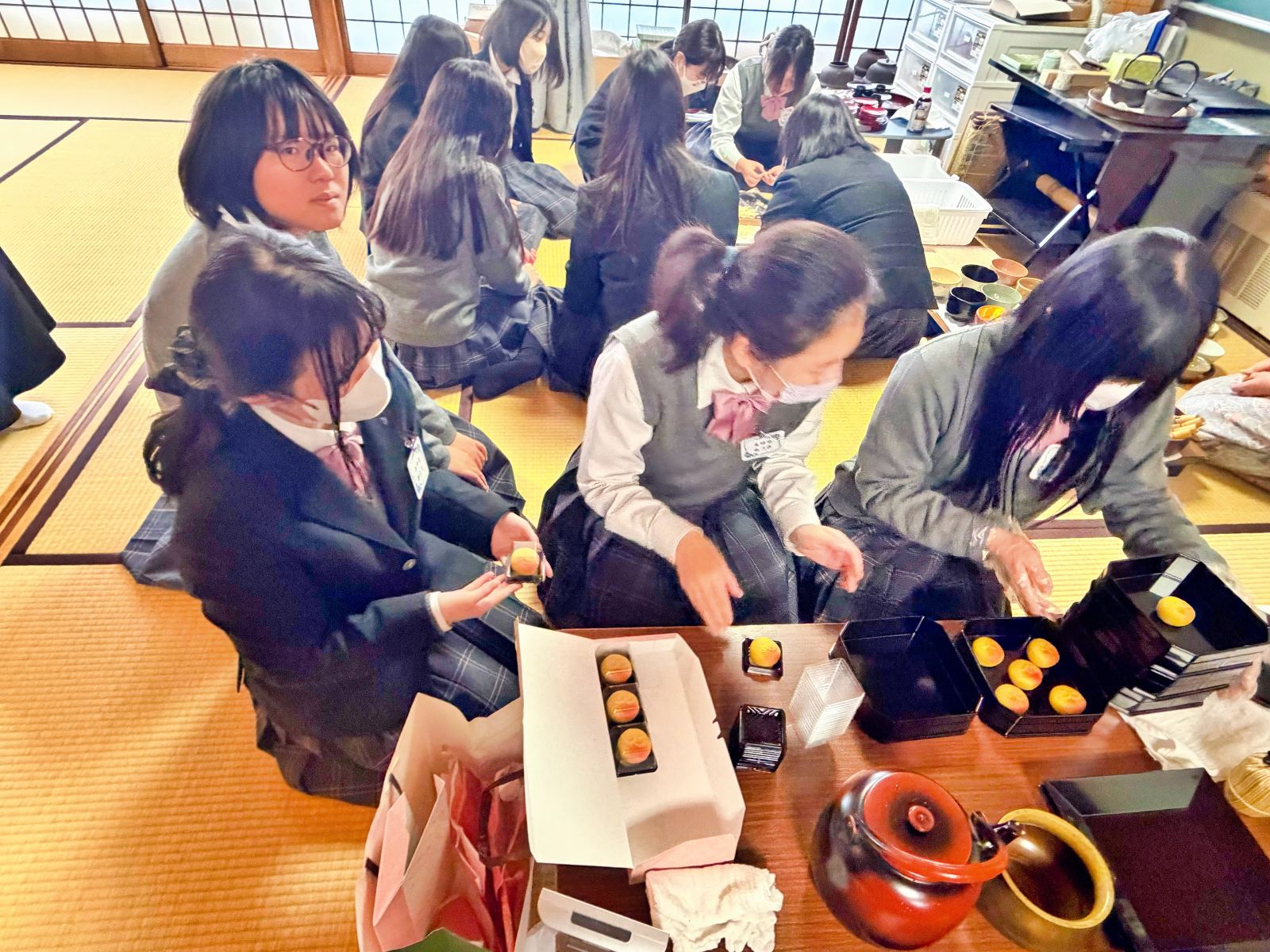 その年の「稽古始め」でもあり、本校の茶道部では、茶道の先生や先輩、後輩との親睦を深めることも目的としています。
