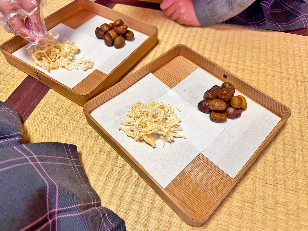 お屠蘇を模したぶどうジュースと一緒にいただきました。※アルコールは入っていません。