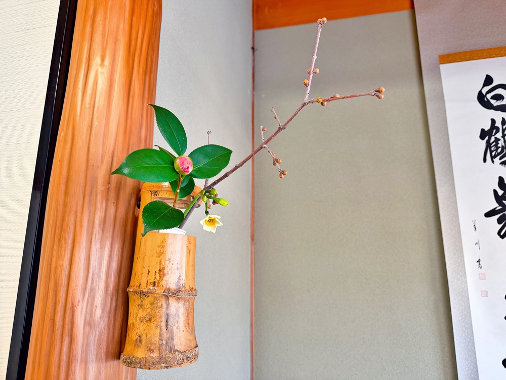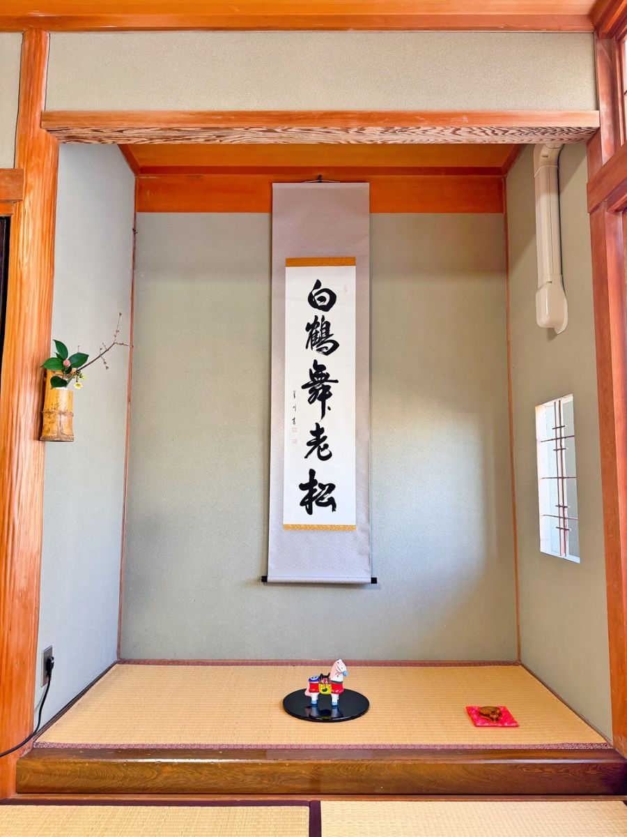 縁起のいい掛け軸や生け花、おめでたい道具等を飾り、お正月らしい和菓子を抹茶(濃茶、薄茶)とともにいただきました。
