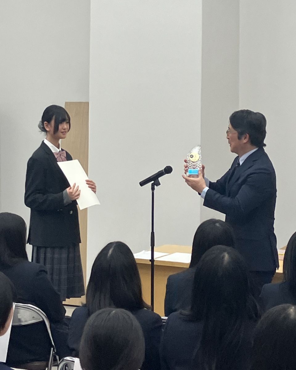 写真は芸文大賞に選ばれた作品と表彰式の様子です。