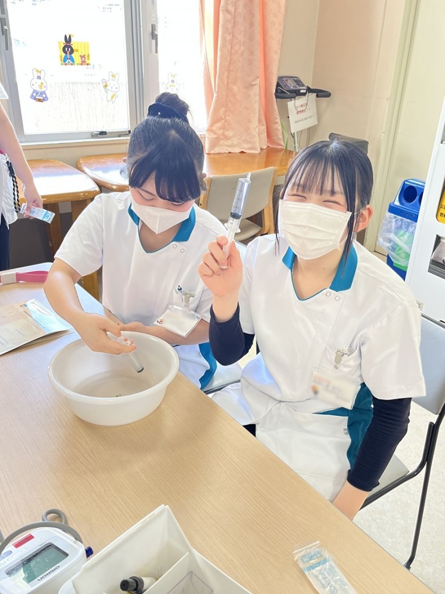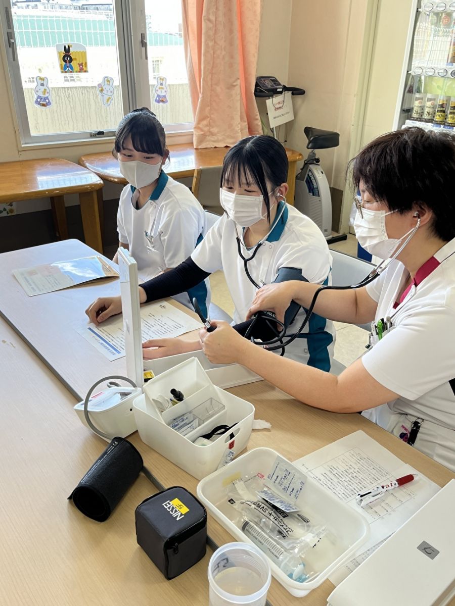 初めての医療現場での看護体験に少し緊張した様子でしたが、看護師さんに教えていただきとても有意義な時間を過ごすことができました。